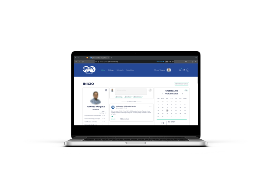 El Aula Virtual de la SPE Ecuador Section proporciona a sus miembros una plataforma completa y accesible para su formación técnica. Gracias a la flexibilidad y funcionalidad de Opigno LMS, el Aula Virtual permite a la SPE Ecuador Section ofrecer un aprendizaje de alta calidad, adaptado a las necesidades de la industria y a las expectativas de los profesionales que buscan mejorar sus habilidades y competencias.